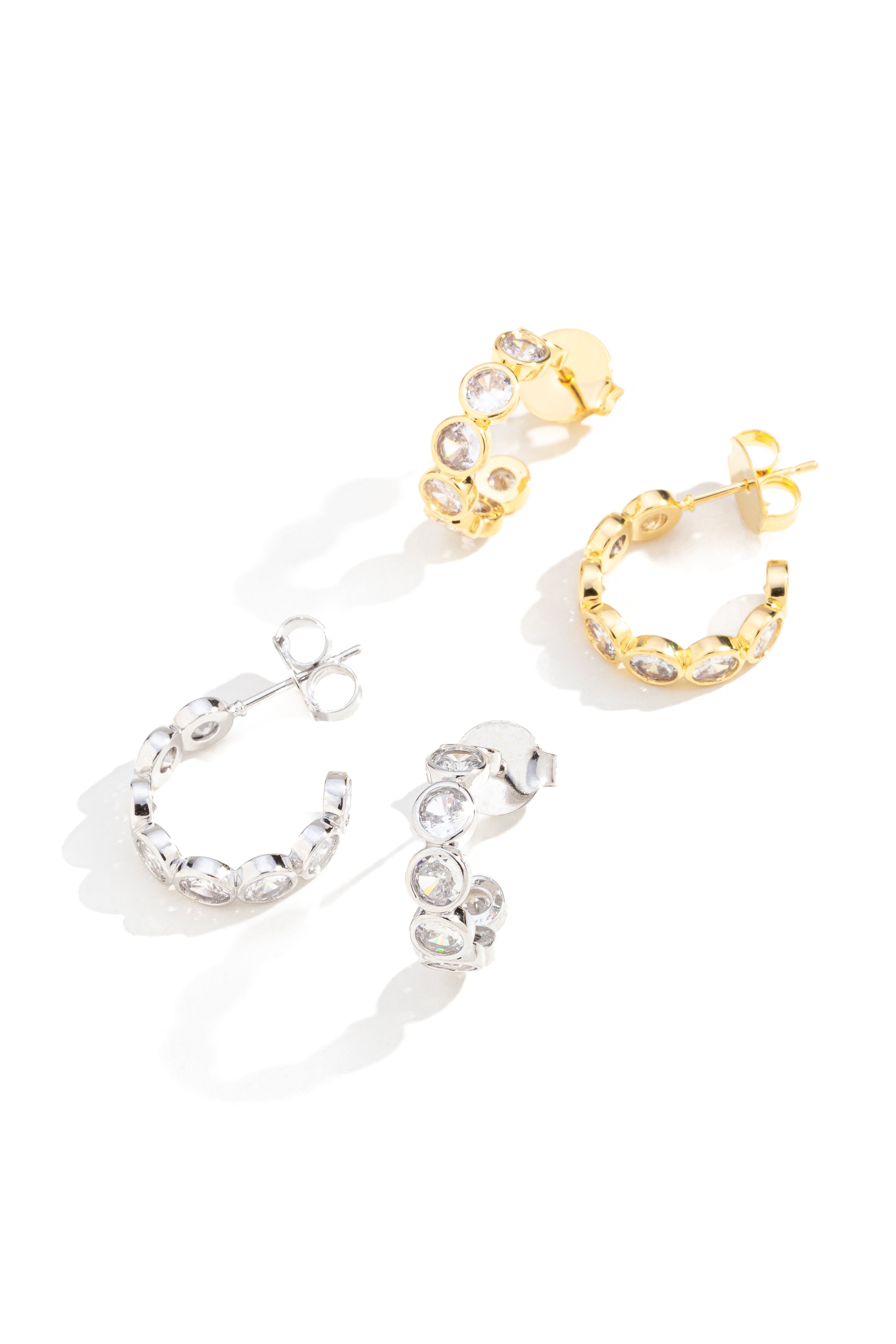 Brinco Meia Argola com Zircônia
