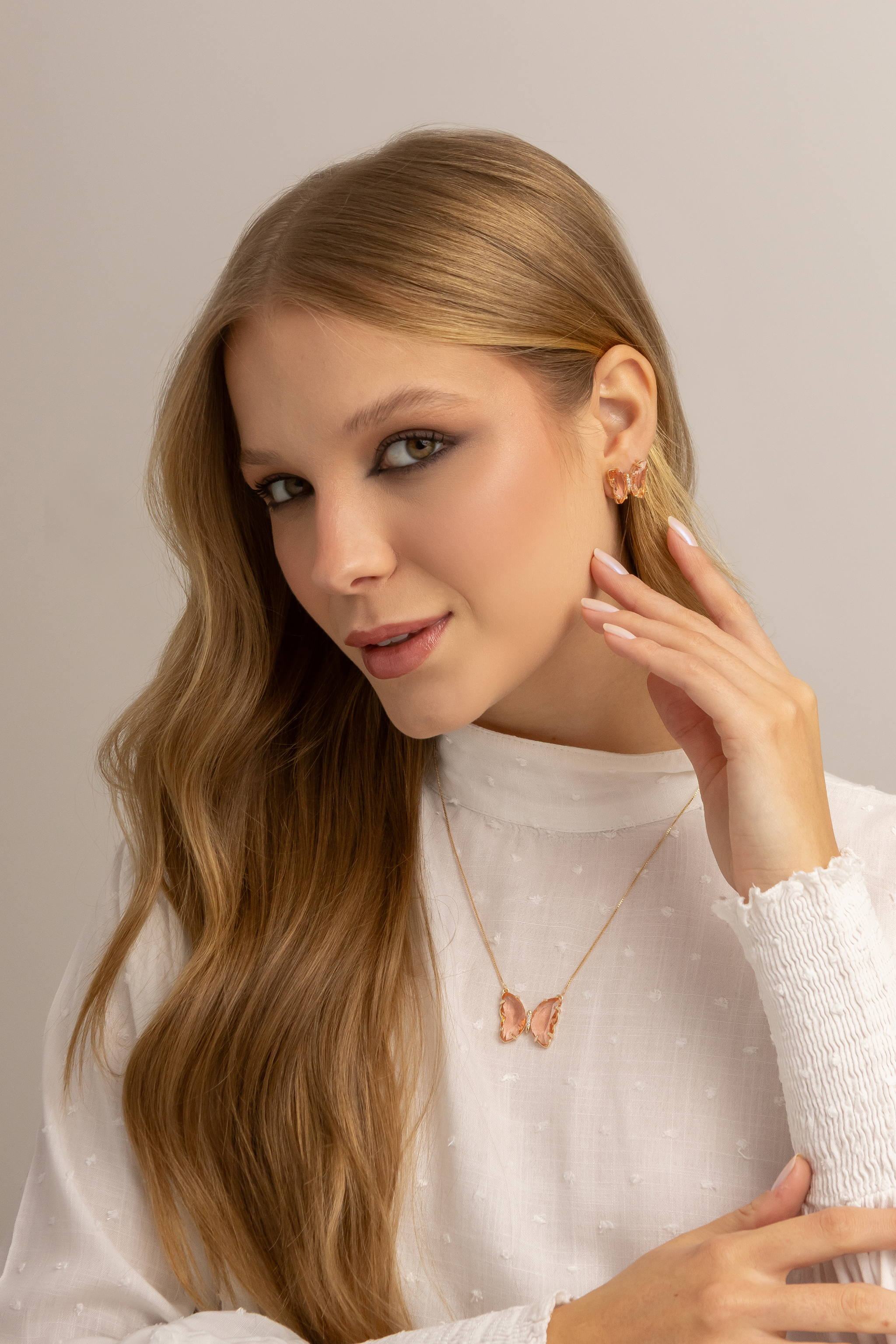 • Conjunto de Colar e Brinco Borboleta de Cristal