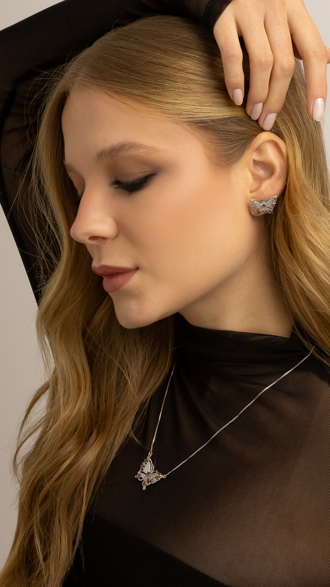 Conjunto de Colar e Brincos Borboleta Encantado