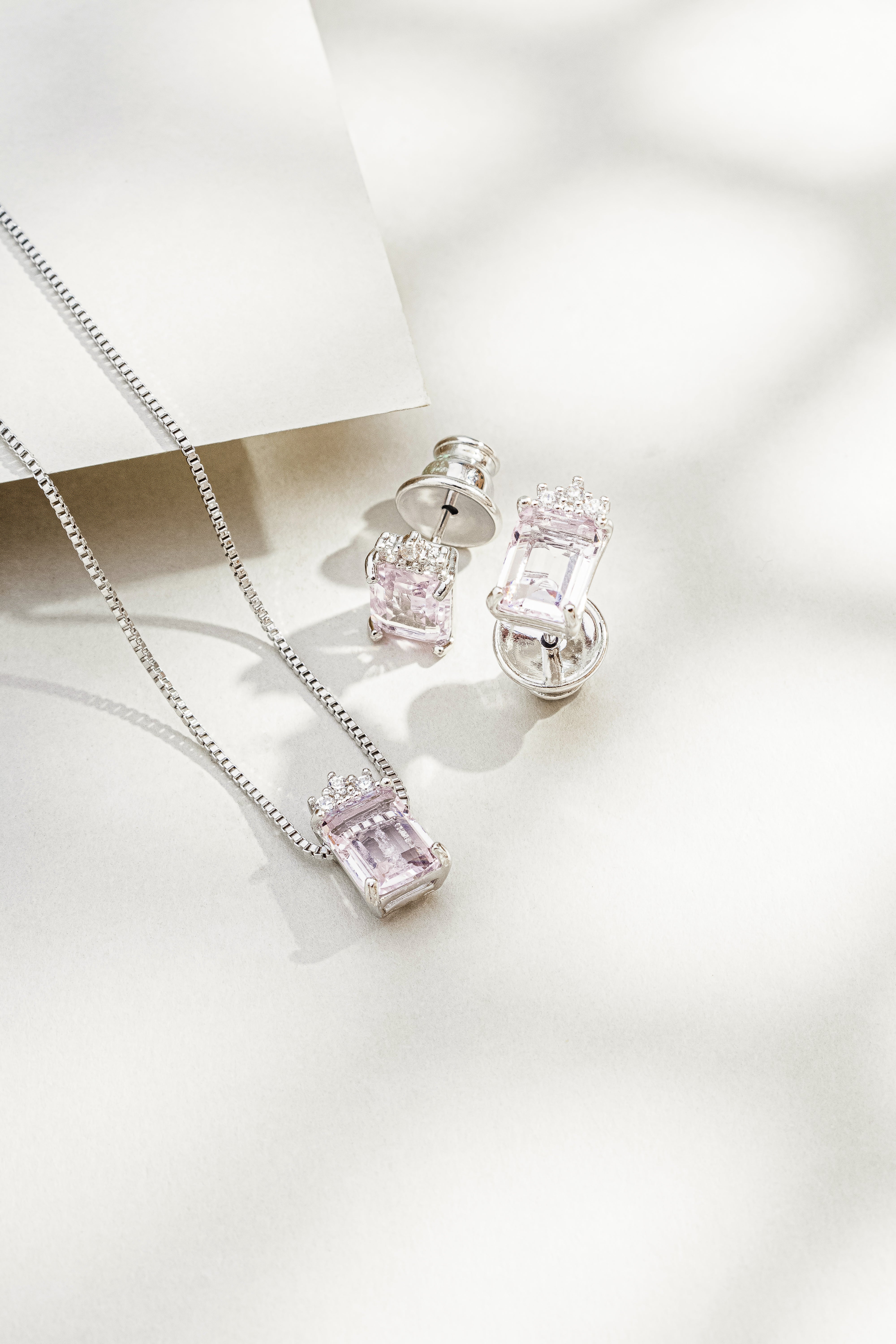 Conjunto de Colar e Brincos Oval com Zircônia Violeta