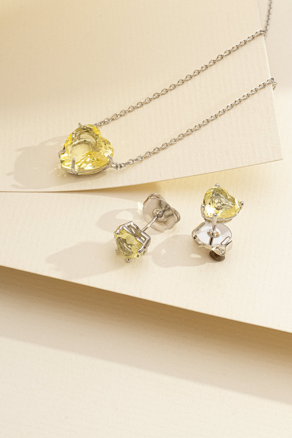 Conjunto de Colar e Brincos Coração com Zircônia